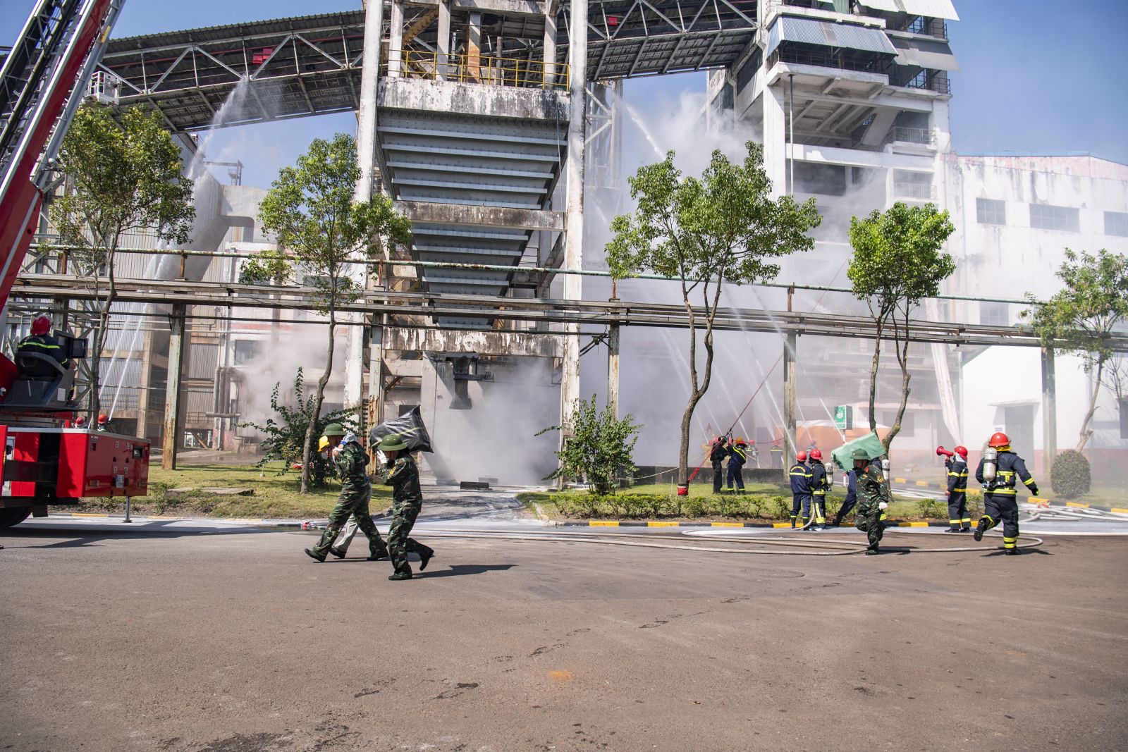 Sau thời gian triển khai đồng bộ các biện pháp, lực lượng tham gia đã tổ chức tổng tấn công, dập tắt hoàn toàn đám cháy, cứu nạn an toàn các nạn nhân, đảm bảo an toàn cho khu vực nhà máy. Buổi thực tập diễn ra theo đúng kịch bản, đảm bảo yêu cầu về kỹ thuật, chiến thuật và an toàn tuyệt đối về người và phương tiện.